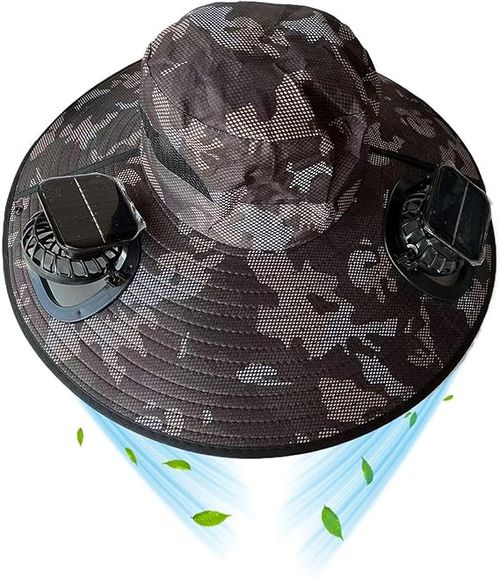 Unisex Fisherman Hat with Built-in Fan — Ideal for Camping, Hiking, Beach Trips, Gardening, and Outdoor Activities 2-in-1 Wide-Brim Sun Hat with Integrated Solar-Powered FanStyle Square Solar Camouflage (Dark Gray)146 sales